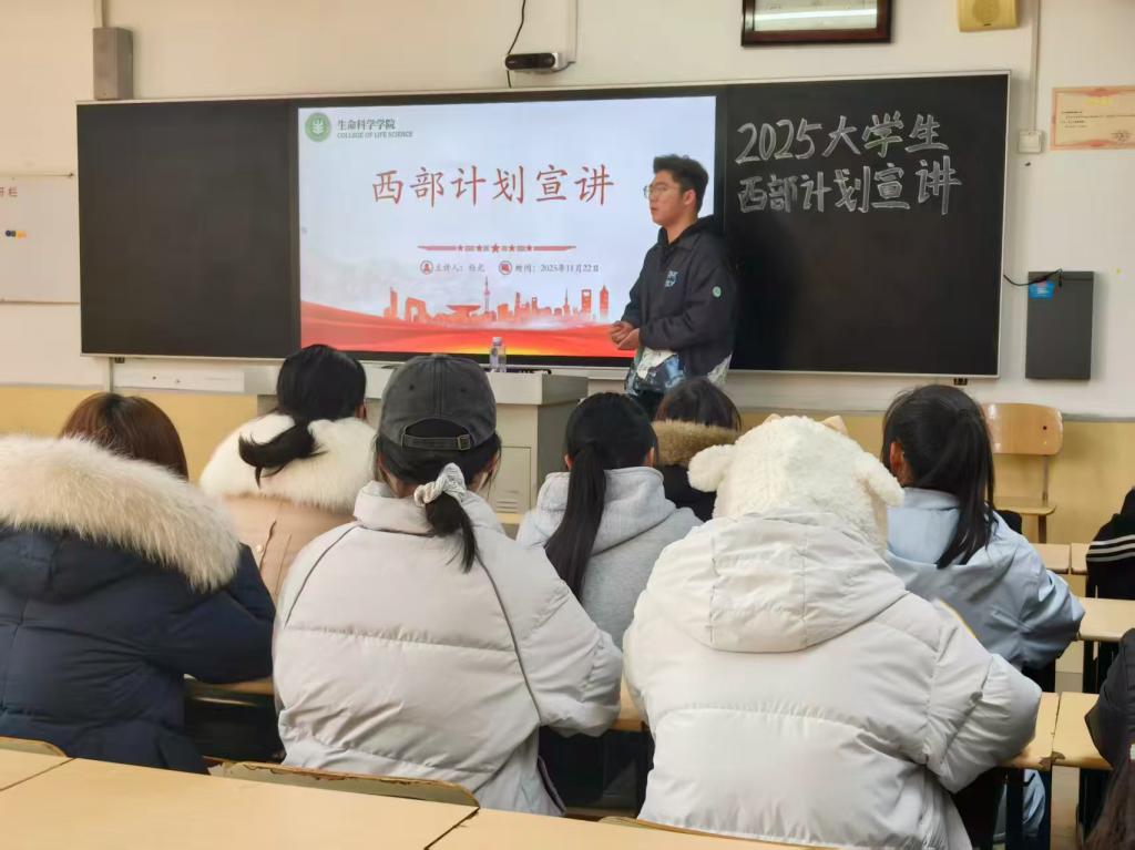 为引导学生树立正确的就业观、成才观,鼓励青年学子将个人理想融入国家发展大局,2025年11月29日,beat365英国官方网站在理工楼2201举办了西部计划宣讲会。此次宣讲会特邀正在参加2025年大学生志愿服务乡村振兴计划滕州项目的我校2025届校友杨光主讲。