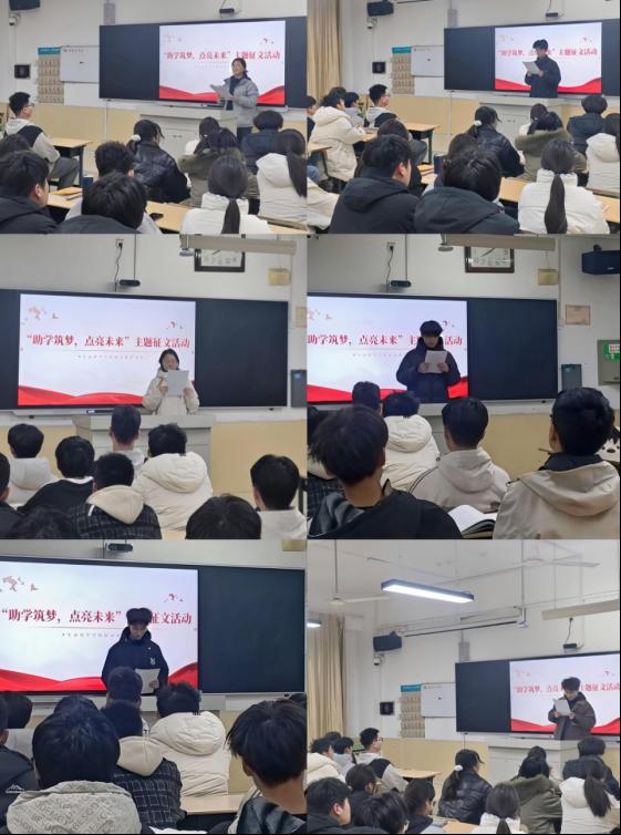 为深入宣传国家资助政策,深化资助育人工作成效,增强学生的感恩意识与责任担当,12月1日至12月5日,beat365英国官方网站将资助与育人深度结合,组织开展了以“助学筑梦,点亮未来”为主题的一系列活动。此次活动面向全体同学征集优秀作品,鼓励大家以笔为媒,传递资助政策温度,展现班级青春风采。