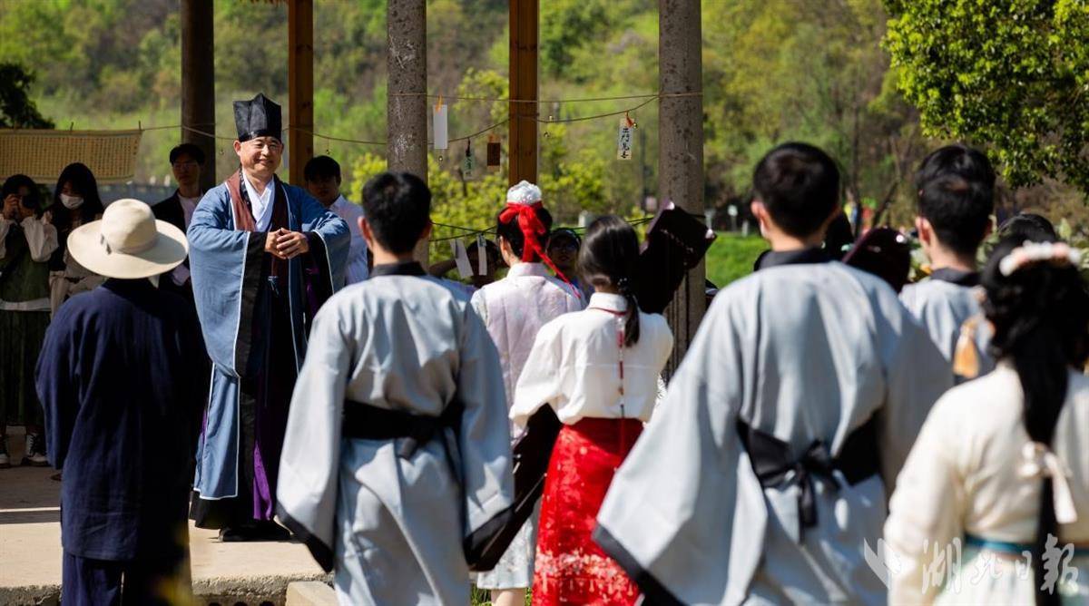 3月30日,马鞍山森林公园太渔桥油菜花海里的非遗体验课堂,身着汉服的少男少女,进行古琴、琴歌、吟诵、书法、围棋、品茗、民歌、民间舞蹈、投壶、鱼龙、舞龙、太极、健身气功等十几项非遗项目的体验课精彩展示,并与游客亲密互动,体现了非遗“见人、见物、见生活”的理念。