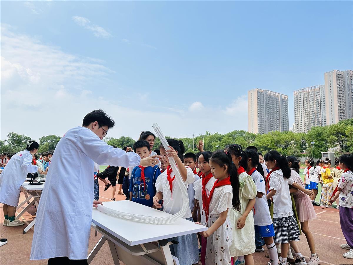 “悬浮的球”“神奇的伯努利机关枪”“威武的空气炮”“辣手摧花”“金鱼的生死历程”“恐怖的蘑菇云”“水火相容”“火焰掌”……去年暑假,科艺大篷车开进了黄冈市浠水县丁司垱镇丁司垱小学,40名大学生志愿者带着500多名孩子,用艺术形式演绎科学,激发孩子对科学的兴趣。