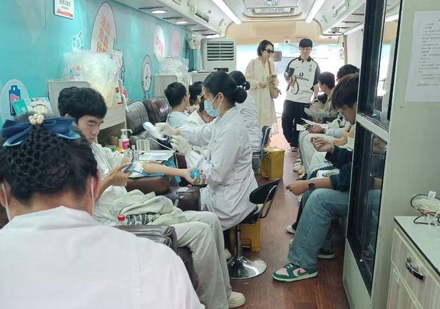 在当天上午8点半时,两辆代表着奉献与希望的爱心献血车缓缓驶入文华广场,工作人员们有条不紊地开始了他们的准备工作,不一会便有学生来扫码登记,准备为这份爱心事业做出自己的一份贡献。