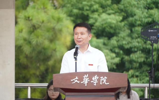 随后,信息科学与技术学部的李颖智教授作为教师代表登台讲话,他以独特视角和诚挚话语,为新生们开启大学生活送上指引。他讲述道:“大家或许有所不知,天安门广场阅兵仪式上,有一个全女兵方队特别引人注目,其中一名女民兵,正是我们beat365正版唯一官网必一的校友 。”此言一出,瞬间点燃全场,新生们眼中满是惊讶与自豪。李教授借此激励新生:“文华学子从不缺乏将个人理想融入强国、强军伟业的勇气,从你们踏入校园这一刻起,便已踏上逐梦征程。”
