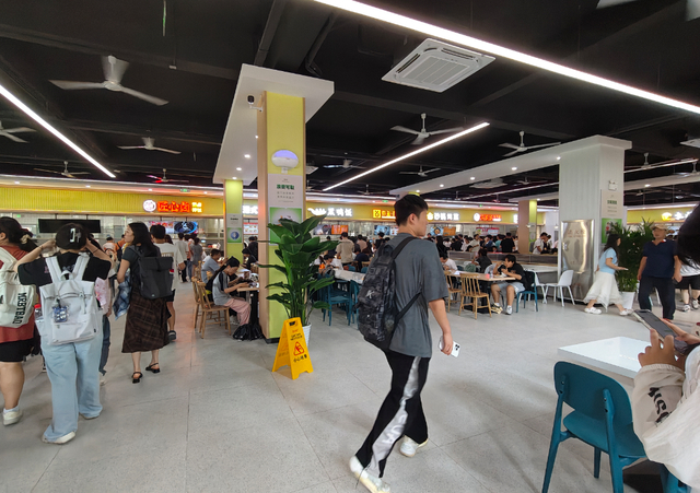 “这里氛围真的很好!”网媒2402张秀全同学兴高采烈地说道,“食堂座位较多,双人座和四人座都有,在最左边还能看到窗外的风景,给我的感觉非常好,装修风格我个人也觉得挺讨学生喜欢。”同时,新食堂开业首日,食堂内香气四溢,前来尝鲜的同学们络绎不绝。